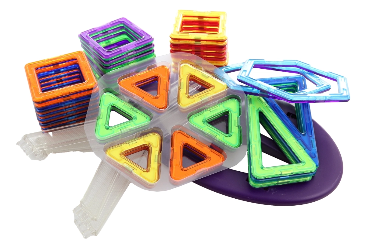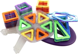 Magnetična građevna set sadrži 72 dijela različitih boja i oblika, uključujući vesele naljepnice. Pakirano u kutiji. Dimenzije pakiranja cca 40×29×6 cm. Dob 3+