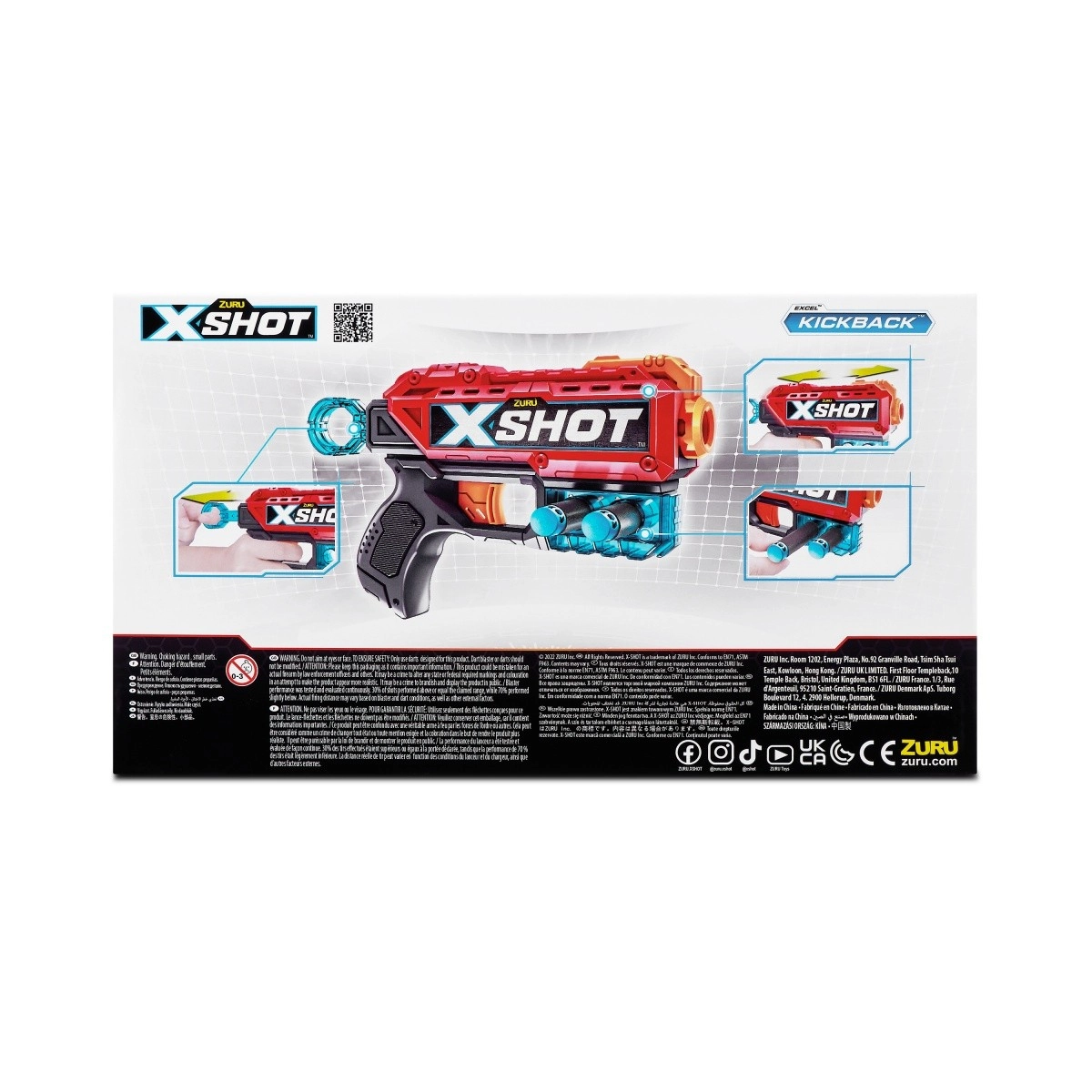 Doživite akciju s kompaktim i moćnim izbacivačem X-Shot Kickback, sposobnim pogoditi cilj na udaljenosti do 27 metara s realističnim povratnim udarcem!