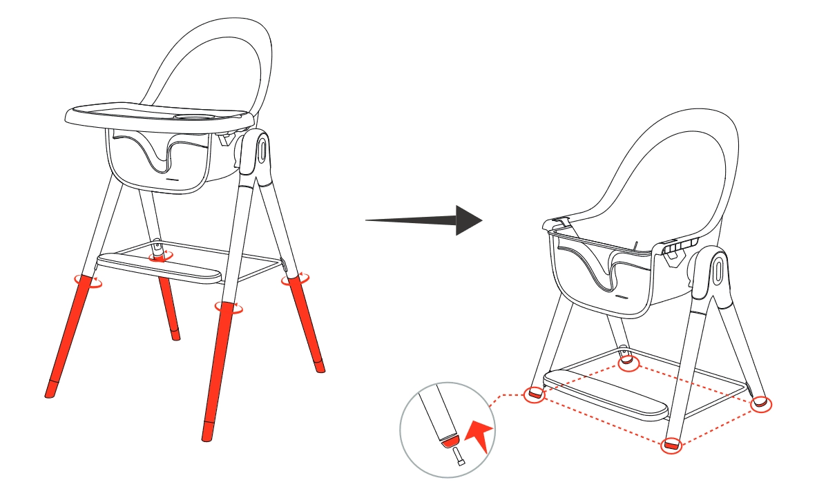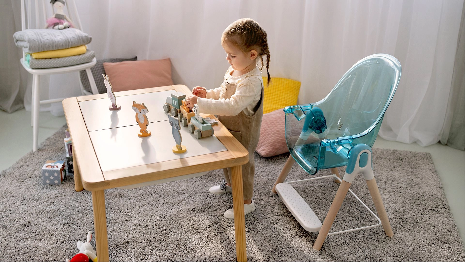 Hranilica nudi opcije za malu djecu i stariju djecu zahvaljujući uklonjivim nogama koje omogućuju podešavanje visine prema potrebi.