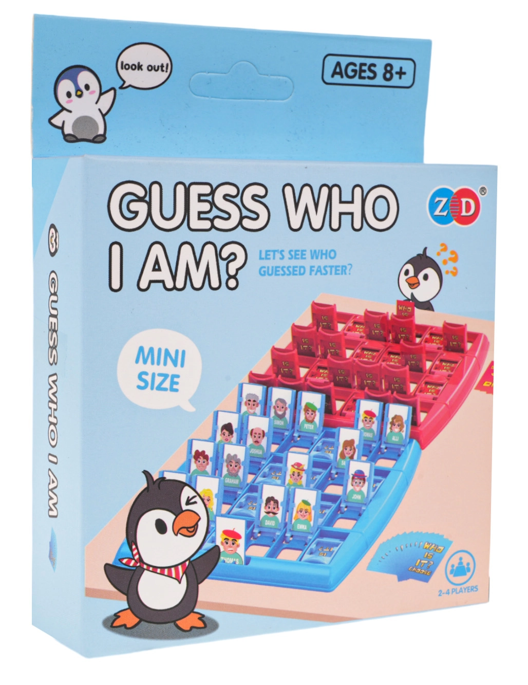 Omiljena pogađalačka igra za 2 igrača. Svaki igrač ima svoju ploču s preklopnim prozorčićima i tajno odabranim likom. Pomoću promišljenih pitanja s odgovorima „da“ ili „ne“ postupno sužavate izbor dok točno ne pogodite kojeg je lika protivnik izabrao. Varijanta Pingvin donosi svjež dizajn i zabavu za cijelu obitelj.