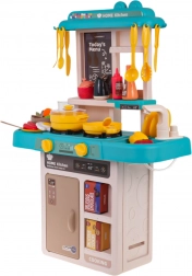 Ova dječja kuhinjica u trendi plavo–tirkiznim tonovima pretvara sobu u mali bistro. Interaktivna ploča za kuhanje nakon okretanja gumba proizvodi zvukove kuhanja i prženja te istodobno osvjetljava plamenike. Iz slavine doista teče voda, pa djeca nakon „kuhanja“ mogu isprati posuđe kao u pravoj kuhinji.