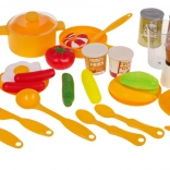 - Kuhinjica, tavica, lonac s poklopcem, zdjelica, pribor i kuhinjski alat, tanjuri, posudice za začine, umaci, šalica, deserti, konzerve, dodatci za fast food, makete namirnica (paprika, rajčica, list salate, ploške mrkve i paprike, kozica, jaje na oko, hrenovke, banana, grašak, krastavac)