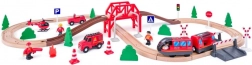 Kompletan set s vlakićem, tračnicama, mostom, prometnim znakovima, drvećem i figuricama nudi bezbroj mogućnosti igre i scenarija iz svijeta vatrogasaca.