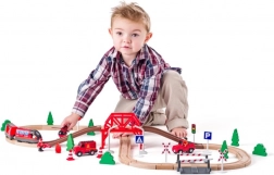 Drvena vatrogasna željeznička pruga donosi djeci sate kreativne igre. Duga ruta od približno 350 cm s mostom, znakovima i figuricama stvara dinamične spasilačke scenarije. Kvalitetni drveni dijelovi ugodni su na dodir i dovoljno izdržljivi za svakodnevnu igru.