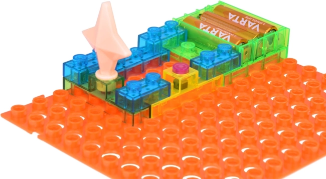 Prozirni, obojeni moduli lako se povezuju na stabilnoj osnovnoj ploči. Oznake na dijelovima olakšavaju ispravno usmjeravanje i sprečavaju greške.