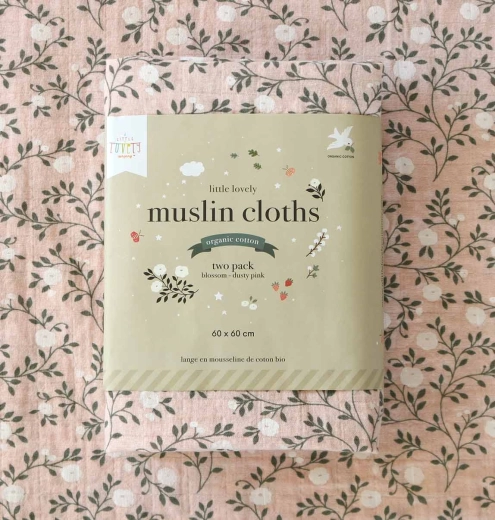 Set od dvije musselin pelene od 100% organskog pamuka s nježnim cvjetnim uzorkom. Pelene su lagane, upojne i prozračne, idealne za svakodnevnu uporabu pri hranjenju, presvlačenju i kupanju. Dimenzija jedne pelene je 60 × 60 cm.
