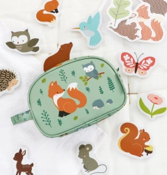 Ovaj set pjenastih igračaka za kadu sa šumskim životinjama donosi djeci od 3 godine kreativnu zabavu pri svakom kupanju. Pojedini dijelovi nakon namakanja prianjaju na stijenke kade ili kupaonske pločice, pa djeca mogu stvarati vlastite priče i slike. Materijal ne upija vodu, brzo se suši i higijenski je.