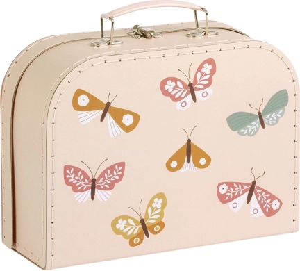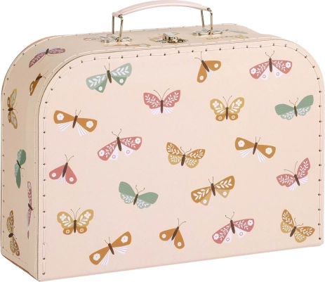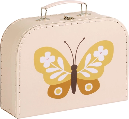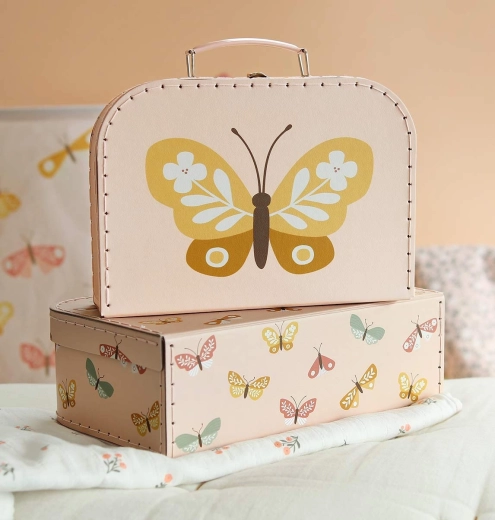 Praktičan i stilski set dvaju kofera u nježnoj bež nijansi s razigranim ilustracijama leptira donosi red i radost u svakodnevicu. Veći i manji kofer poslužit će za igračke, bojice, bilježnice, male dragocjenosti ili kao dekorativne kutije za odlaganje u dječjoj sobi.