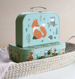 Otkrijte čarobni set od dva kovčega s ilustracijama lisice, sove i drugih šumskih prijatelja. Zahvaljujući dvjema veličinama lako ćete organizirati igračke, bojice i male dragocjenosti. Izdržljiva kartonska konstrukcija s kvalitetnim prošivom podnosi svakodnevnu upotrebu, dok metalna ručka i kopča omogućuju udobno nošenje i sigurno zatvaranje.