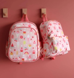Presladak i praktičan dječji ruksak s motivom sladoleda idealan je za vrtić i izlete. Nudi prostranu glavnu komoru, izolirani prednji džep za užinu, dvije bočne džepove za bocu i podstavljene naramenice s prsnom trakom za udobno i sigurno nošenje.