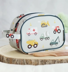 Preslatka dječja toaletna torbica s motivom vozila idealna je za izlete, kampove i godišnji odmor. Nudi prostrani glavni pretinac, zatvaranje na patentni zatvarač i praktičnu petlju za lako nošenje. Zahvaljujući kompaktnim dimenzijama stane u ruksak, a pritom primi sve potrebno za svakodnevnu higijenu.