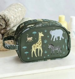 Stilska i praktična dječja toaletna torbica s veselim motivima žirafe, zebre, lava i ostalih stanovnika savane. Zahvaljujući kompaktnim dimenzijama stane u ruksak ili kofer i drži sve higijenske potrepštine uredno na jednom mjestu.