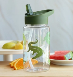 Ova stilska boca za piće s motivom krokodila djeci olakšava održavanje pravilne hidratacije. Zahvaljujući čvrstom zatvaraču i slamci, pijenje je udobno, a boca ostaje bez curenja. Prozirne stijenke pomažu pratiti količinu tekućine, a kompaktne dimenzije stanu u svaku dječju torbu ili ruksak.