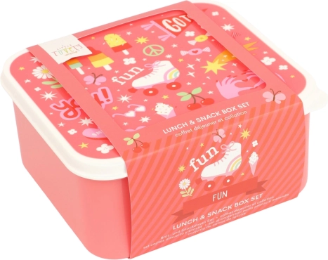 Veseli set od četiri kutije za užinu u četiri veličine s dizajnom koji se može slagati. Jednostavno otvaranje i zatvaranje, lagana i izdržljiva PP plastika te razigrani motivi koje djeca vole. Idealno za školu, izlete i pregledno spremanje užina.