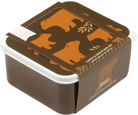 Ovaj praktični set sadrži četiri kutije za užinu različitih veličina, sve s istim razigranim motivom smeđih medvjeda. Zahvaljujući mogućnosti slaganja jedne u drugu uštedjet ćete prostor u kuhinji i ruksaku te lako odabrati idealnu veličinu za voće, kekse ili sendvič. Prikladno za svakodnevnu upotrebu kod kuće, u školi i na putu.