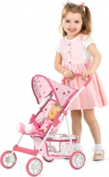 Kolica se brzo sklapaju na kompaktne dimenzije, pa se lako prenose i spremaju. Igra s kolicima pomaže razvoju fizičke koordinacije, uči djecu brizi, obzirnosti i pažnji. Održavanje je jednostavno – dovoljan je mekani suhi ili navlažen krpić.
