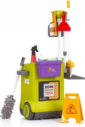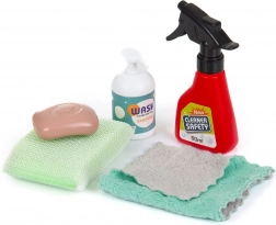 Sadrži sve što je djetetu potrebno za čišćenje – od metle i ručne metlice s lopaticom preko krpica i spreja do upozoravajućeg znaka. Dimenzije kolica 71 × 31 × 33,5 cm osiguravaju lako upravljanje i za manju djecu. Igračka je proizvedena u skladu s europskim sigurnosnim standardima.