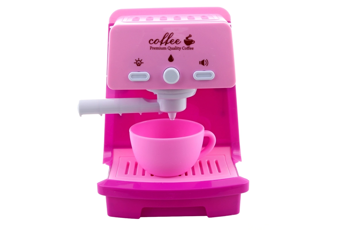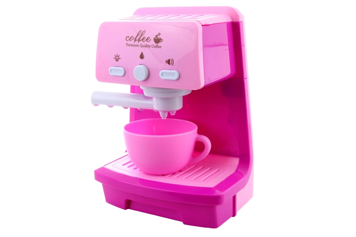 Dječji aparat za kavu sa svjetlosnim i zvučnim efektima, portafiltrom i šalicom. U spremnik se može uliti voda i ručno je pumpati – kao pri pravoj pripremi espressa.
