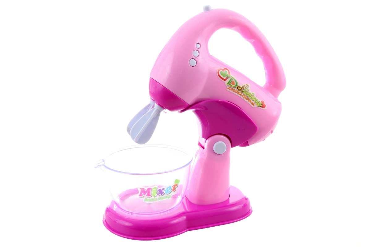 Ručni mikser s metlicom i posudom se okreće, svijetli i ispušta zvukove. Djeca mogu “tući” kreme i tijesta kao u pravoj kuhinji.