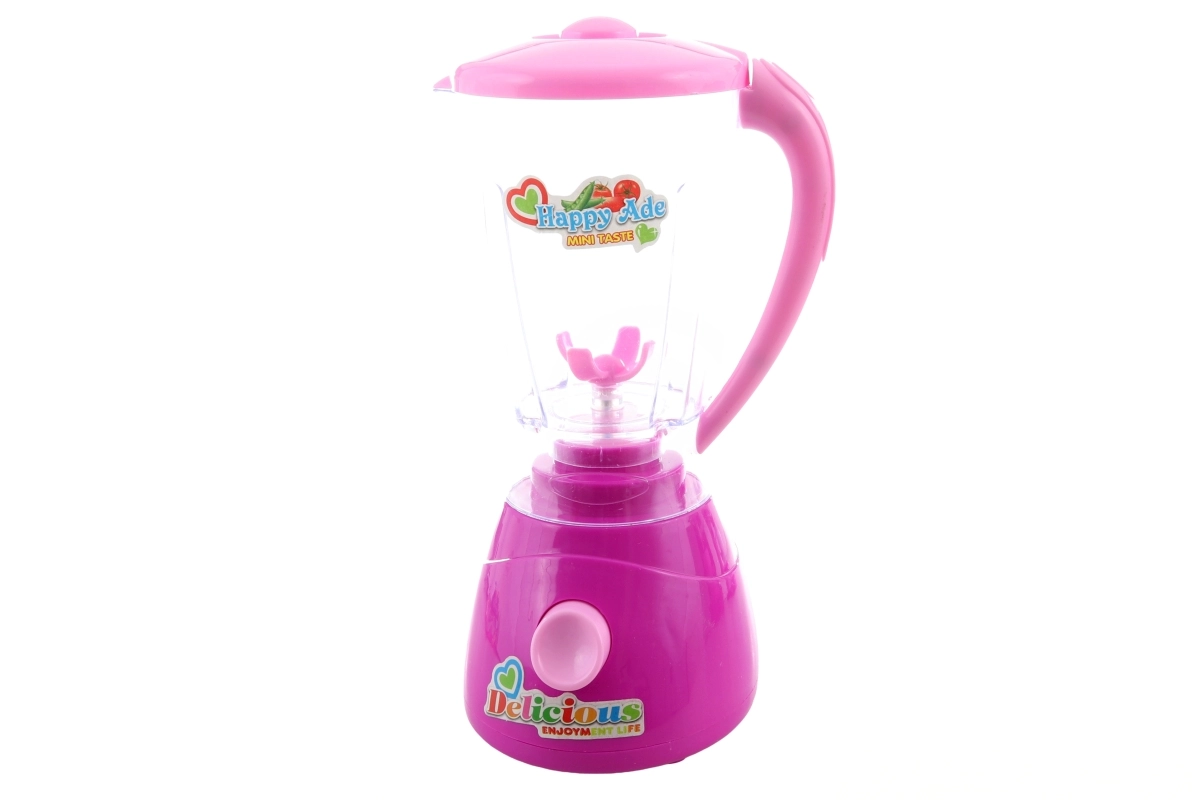 Blender s prozirnom posudom i okretnim gumbom oponaša miksanje napitaka. Odlično za igru pripreme smoothieja i sokova.