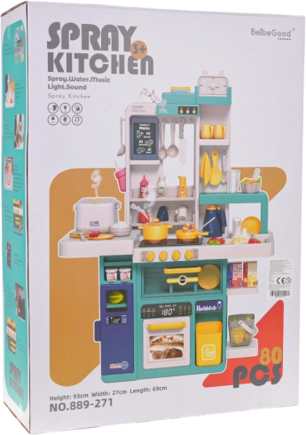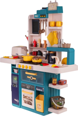 Dječja interaktivna kuhinjica s parom, svjetlima i zvukovima, 80 dijelova – Plava