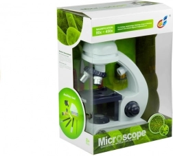 Predstavljeni uređaj bit će izvrstan pomoćnik u upoznavanju prirode i biologije. Pribor koji je dio seta jamstvo je uspješne i prije svega poticajne igre. Konstrukcija igračke omogućuje korištenje dnevnog svjetla kao i svjetla ugrađenog u mikroskop. Gornji dio mikroskopa rotira se za 360 stupnjeva, dok su u dršci smještene tri leće s povećanjem 80x, 200x i 450x. U prednjem dijelu stolčića nalazi se rotirajući disk s četiri filtra koji mijenjaju boju preparata. Dodatna zanimljivost igračke je podesivo povećanje teleskopa.