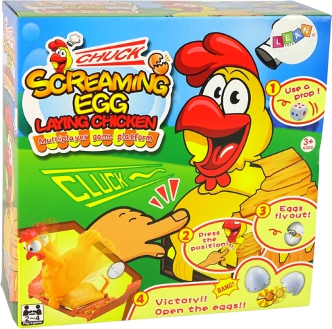 Sa svakim sljedećim pritiskom piskajuće kokoši uzbuđenje raste! Tko zna, možda će baš u tom trenutku kokoš poskočiti, a izleženo jaje odskakati u zrak? Ostanite budni – onaj tko uhvati jaje, dobiva bod. Smatramo da je to igra puna smijeha, napetosti i pozitivnih emocija. Odlično će poslužiti i najmlađima i starijim članovima obitelji koji se žele zabaviti.
