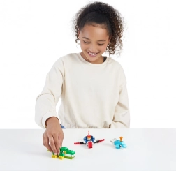 Zahvaljujući raznolikoj paleti šarenih dijelova i posebnim elementima poput plamenova ili kotača, set potiče razvoj fine motorike i kreativnosti.