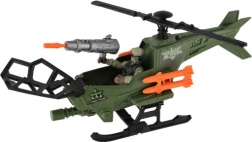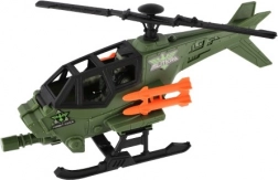 Ovaj realistično oblikovan set donosi djeci uzbudljiv svijet zračnih misija. Zeleni helikopter s crnim rotorima i narančastim projektilima, detaljno izrađena kabina i pokretna figura vojnika potiču maštu, finu motoriku i timsku igru.