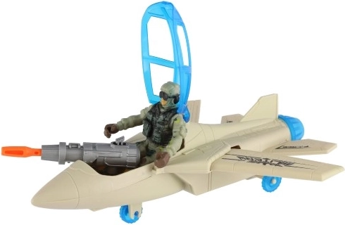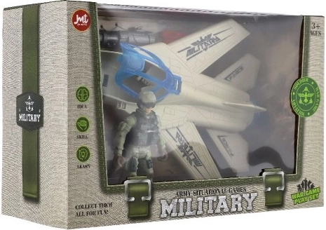 Ovaj atraktivan vojni set donosi djeci sate uzbudljive zabave. Realistični lovac s otvorivim pokrovom kabine i odvojivim dodacima, zajedno s akcijskom figuricom vojnika u punoj opremi, potiču igru uloga i razvoj mašte.