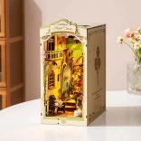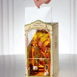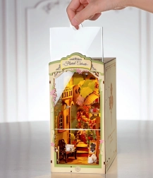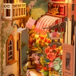 Otkrijte čar uličice među knjigama s minijaturnom cvjećarnicom, gdje ne nedostaju zidovi obrasli bršljanom, lučni prozori, balkon niti odmarajuća mačka. Dijelovi su numerirani i precizno se uklapaju, pa ćete u projektu uživati i bez iskustva – bez ljepila i alata. Integrirano LED osvjetljenje osvjetljava svaki detalj i pretvara vašu policu za knjige u ugodan kutak.