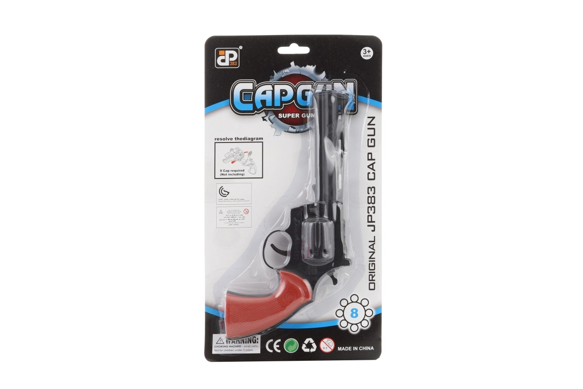 Pištolj na kapisle s kapacitetom 8 metaka idealna je igračka za male avanturiste. Izrađen od izdržljive plastike, pruža sigurnu i zabavnu igru za djecu od 3 godine naviše.