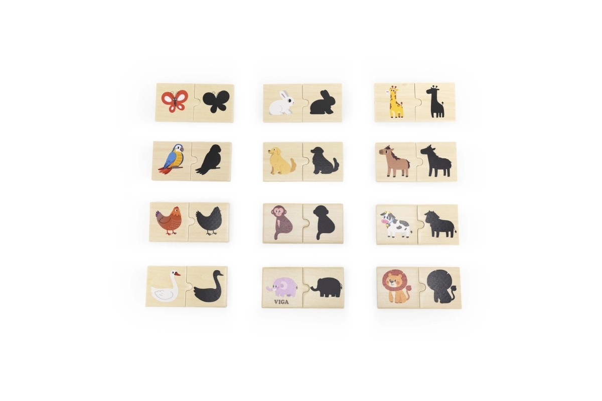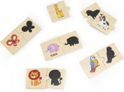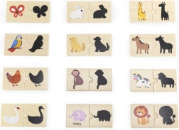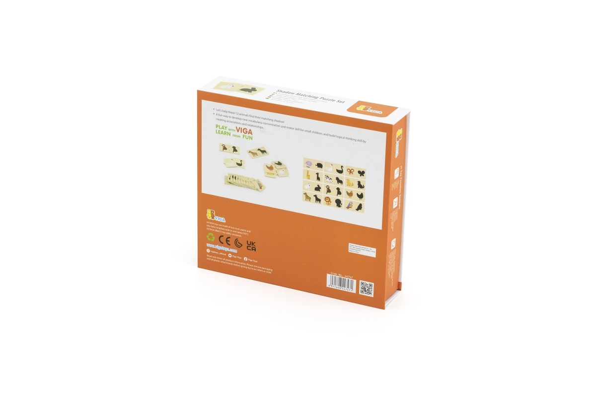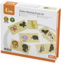 Drveni set slagalica 'Sjene životinjica' idealna je edukativna igračka koja potiče učenje boja, oblika i otkrivanje svijeta oko nas. Djeca mogu slagati, pridruživati životinje njihovim sjenama na odgovarajućim pločicama, što pomaže razvijati prepoznavanje i razlikovanje sjena.