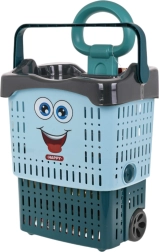 Dječja kupovna kolica s plavom košarom i dodacima idealna su igračka za djecu od 3 godine. Sa živim bojama i veselim osmijehom na košari nude realistično igranje s mogućnošću podešavanja ručke i jednostavnim pomicanjem zahvaljujući kotačićima.