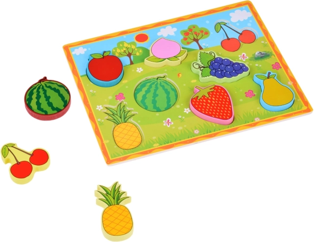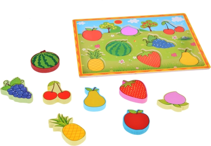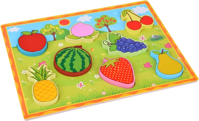 Drvena slagalica Umetanje Voće idealna je igračka za djecu koja žele naučiti prepoznavati različite vrste voća. Ova igračka potiče: