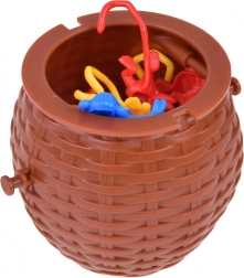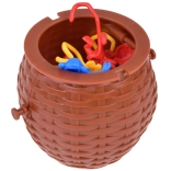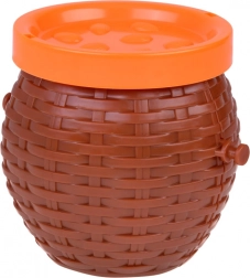 Plastična košara s poklopcem odlična je ne samo za igru već i kao prostor za pohranu majmuna nakon završetka igre.