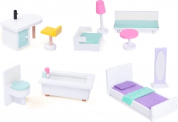 Dio pakiranja je 10 komada drvenog namještaja koje se mogu slobodno premještati i kombinirati. Pomično dizalo povezuje katove i igri dodaje realističnu dimenziju. Precizna izrada od stabilnog drva i sigurni rubovi čine kućicu izdržljivom igračkom za mnogo godina.
