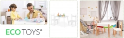 Prostrana radna površina prima kocke, bojice i bojanke. Dvije stoličice potiču zajedničku igru i učenje braće i sestara ili prijatelja.