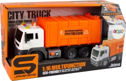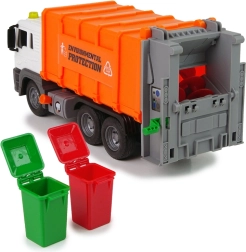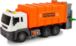Otkrijte zabavnu i edukativnu igračku koja potiče odgovoran odnos prema prirodi. Narančasti kamion za smeće detaljno je izrađen, ima funkcionalnu kiper karoseriju, a pomoću jednostavnog mehanizma djeca istresu sadržaj kanti u spremnik. Zvučni efekti pojačavaju dojam stvarne igre, a frikcijski pogon osigurava živahnu vožnju bez baterija u kotačima.
