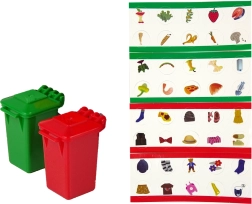 Šarene kante i kartice s predmetima pretvaraju igru u poučnu aktivnost punu zabave.