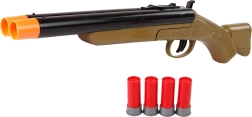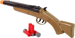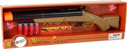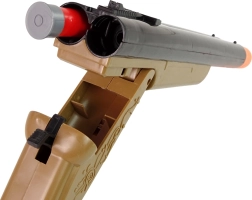 Puška izgleda baš kao one koje kauboji imaju u vesternima. Na sredini oružja nalazi se poluga koja je preklapa na pola. To omogućuje umetanje velikih metaka. Sljedećim glatkim pokretom prema gore zatvorite je i spremna je za pucanje. Unutra su dvije komore za metke, možete ispaliti dva hica. Ne pucaju istovremeno; dvije okidače omogućuju pucanje jednog za drugim. Sačmarica proizvodi samo zvučne efekte, iz cijevi ništa ne izlazi, što jamči sigurnost za vaše dijete.