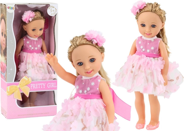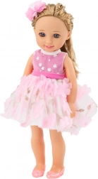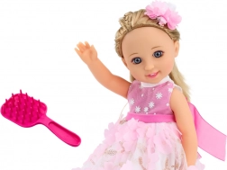 Lutka ima dugu plavu kosu koja se može različito oblikovati, a dolazi s četkom za češljanje i uređivanje kose. Kosu dodatno krasi preslatka kopča koja lutki daje poseban šarm. Odjevena je u prekrasnu ružičasto-bijelu haljinu ukrašenu ružičastim cvjetovima i zlatnim detaljima. Haljina je elegantna i moderna, idealna za svaku priliku. Lutka nosi ružičaste cipele koje savršeno pristaju uz njezinu haljinu. Ima nježan make-up koji naglašava njezin elegantan izgled te pažljivo oslikane oči i usne koje joj daju izražajnost i privlačnost.