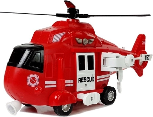 Helikopter je opremljen s tri tipke koje kombiniraju zvučne i svjetlosne efekte: čuju se zvukovi leta helikoptera i sirena za spasilačke akcije. Prednje svjetlo osvjetljava put, a crvena dioda na stražnjem dijelu signalizira položaj helikoptera. Zahvaljujući velikim crnim sklopivim rotorima djeca mogu letjeti modelom po sobi ili ga voziti po podu zahvaljujući kotačićima.