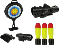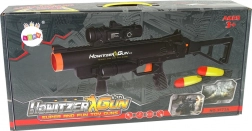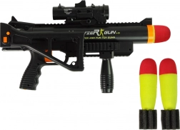 Ovaj dječji bacač granata izvrsno je opremljen za akcijsku igru u kući i na otvorenom. Sa strane ima funkcionalnu svjetiljku za osvjetljenje okoline, na vrhu okular/optičku nišansku spravu za bolje nišanjenje, a straga preklopni oslonac za stabilno držanje na ramenu. Poseban opružni mehanizam osigurava snazan izbačaj praćen realističnim zvukovima eksplozije, punjenja i serije pucnjeva. Pjenaste rakete mekane su i sigurne.
