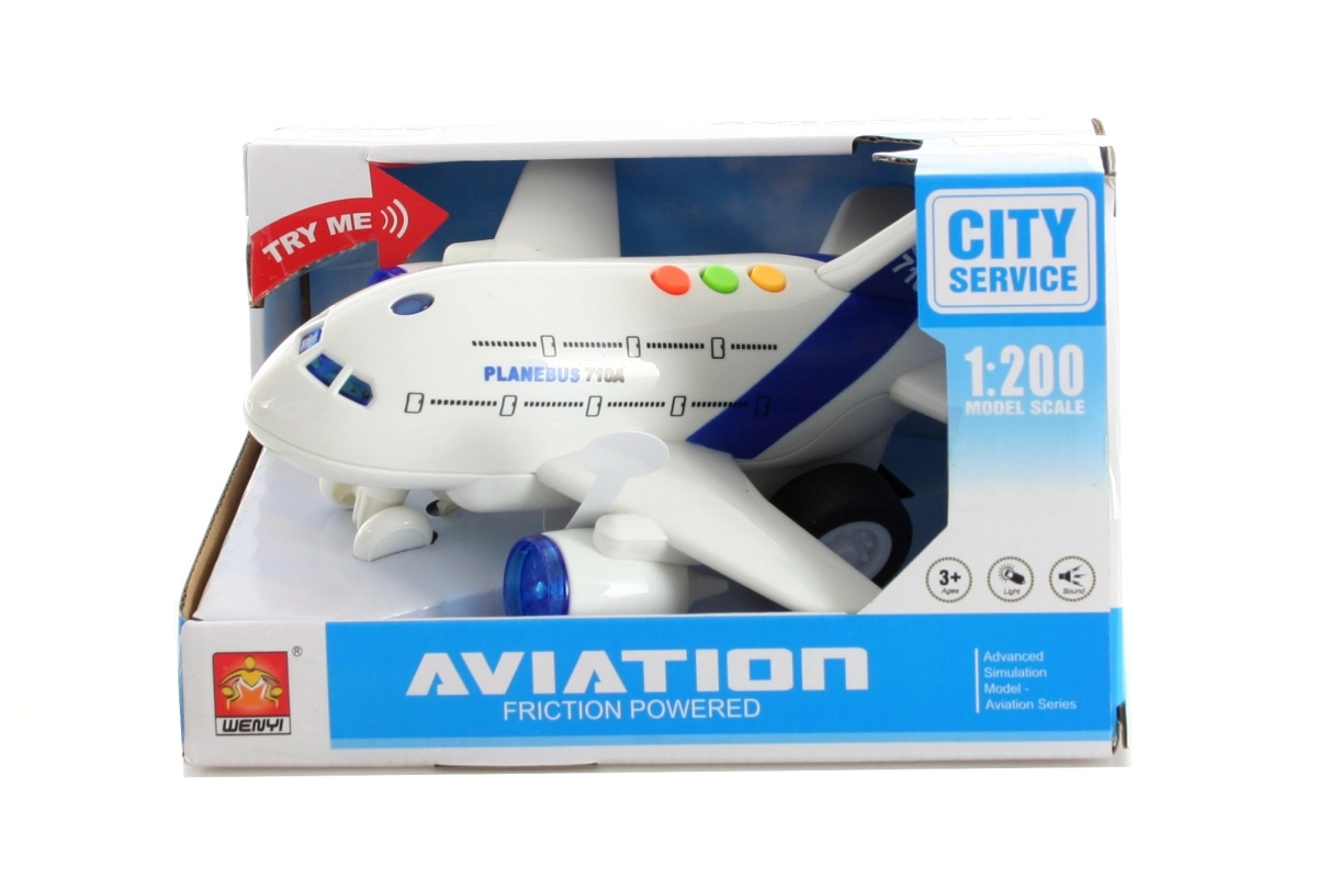 Zrakoplov na baterije sa svjetlom i zvukom. Napajanje 3x AG13 (uključene u pakiranje). Dimenzije zrakoplova cca 20 x 17 cm. Dimenzije pakiranja cca 21,5 x 15 x 13 cm. Dob 3+