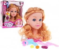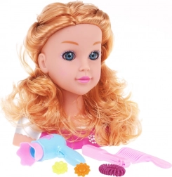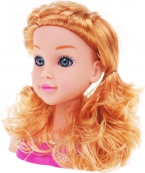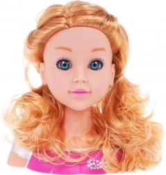 Duga valovita plava kosa i realističan izraz lica pružaju autentično frizersko iskustvo i potiču dječju kreativnost.