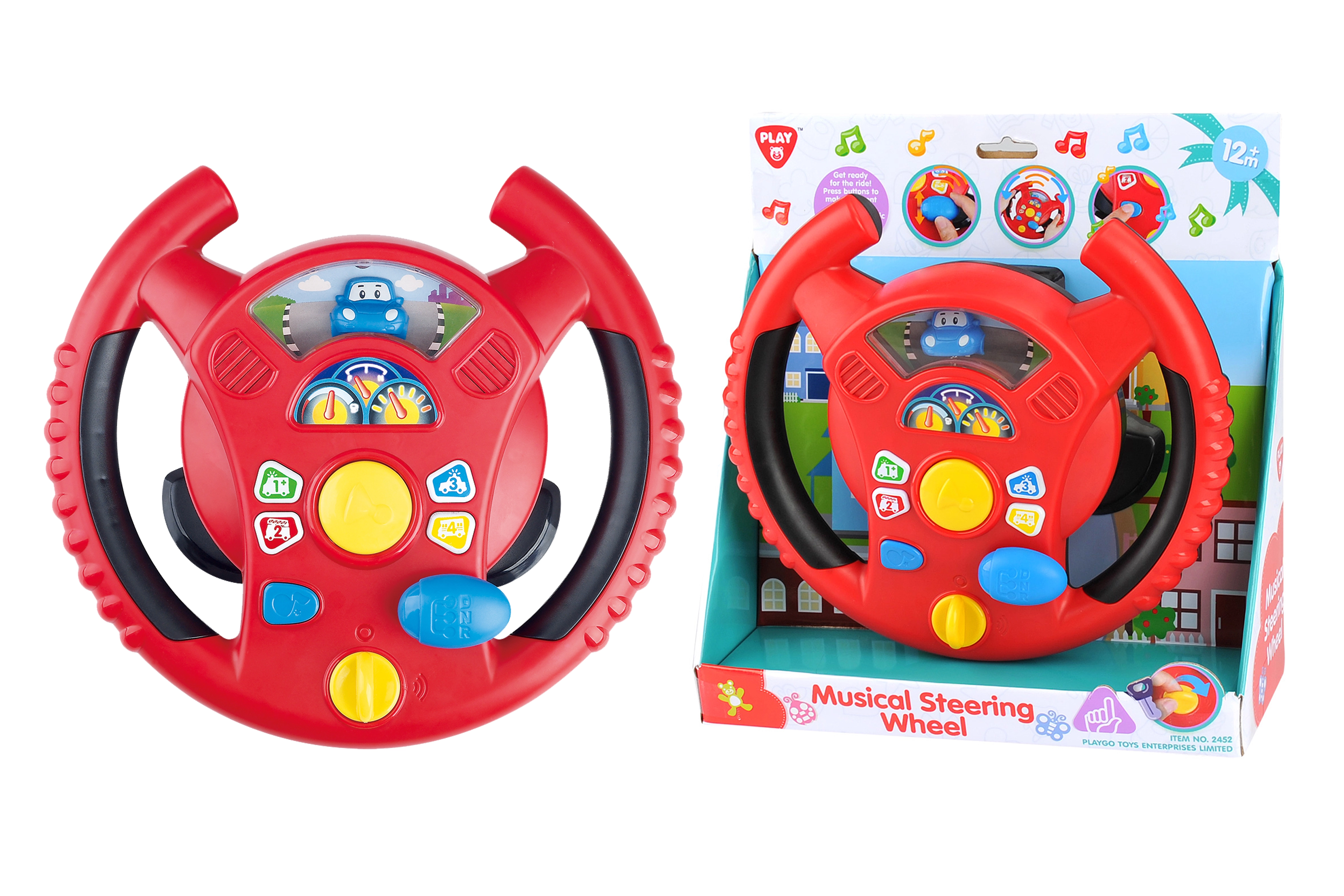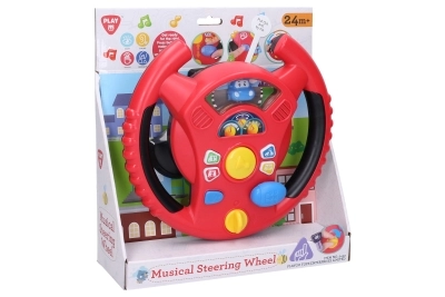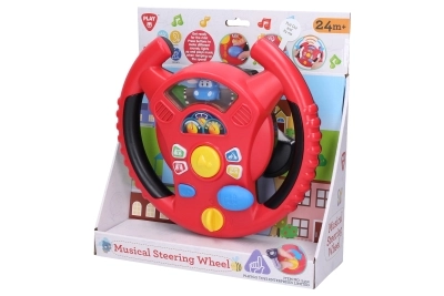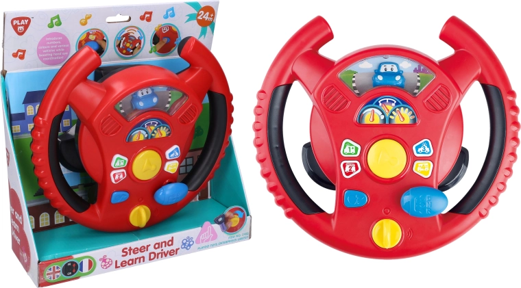 Interaktivni volan Playgo donosi djeci zabavnu igru vožnje u mini gradu. Okretni prekidač na donjoj strani volana služi za uključivanje, u sredini se nalazi truba, desno ručica mjenjača za zvukove vožnje, a na obruču volana mala tipkala s tonovima i melodijama. Djeca će uživati u realističnim efektima koji podsjećaju na pravi automobil, pritom razvijajući koordinaciju i maštu.