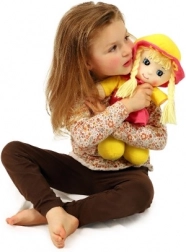 Preslatka tkanena lutkica s dugim pletenicama i cvjetnim šeširićem ima mekano tjelešce od nježnog materijala i idealna je za maženje, u krevetić i na putovanja. Zahvaljujući visini od 35 cm odlično pristaje i najmanjoj djeci te je prikladna od 0 mjeseci.