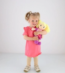 Cijela je lutka od meke tkanine, ugodne na dodir i prikladne i za najmlađe bebe.