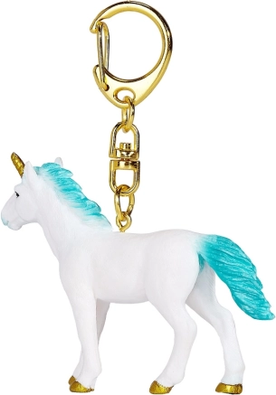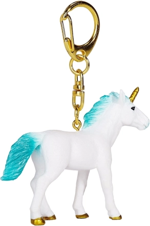 Bijeli jednorog s tirkiznom grivom te zlatnim rogom i kopitima daje ključevima i torbama poseban šarm.